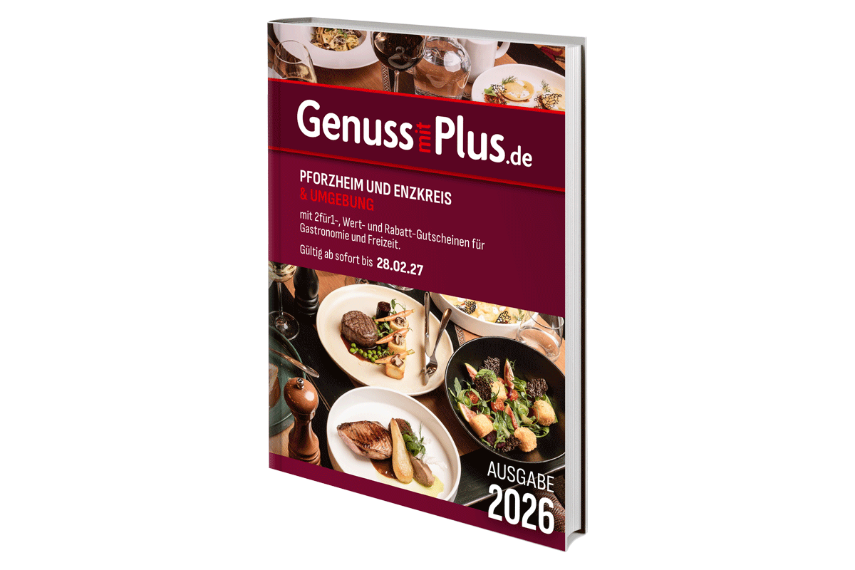 Das Gutscheinbuch „Genuss mit Plus – Pforzheim & Umgebung 2026“ eröffnet Ihnen zahlreiche Möglichkeiten, die Region kulinarisch und kulturell zu entdecken. Freuen Sie sich auf 145 Gutscheine von 96 Anbietern aus den Bereichen Gastronomie, Freizeit, Kultur und Wellness. Profitieren Sie von attraktiven 2-für-1-, Wert- und Rabattgutscheinen für Restaurants, Cafés und vielfältige Freizeitangebote. Das hochwertig gestaltete Taschenbuch mit 212 Seiten bietet inspirierende Texte und Bilder und ist der ideale Begleiter für genussvolle Ausflüge – allein, zu zweit oder mit Familie und Freunden. Die Gutscheine sind sofort gültig und bis zum 28.02.2027 einlösbar. Auch perfekt als Geschenk geeignet.
